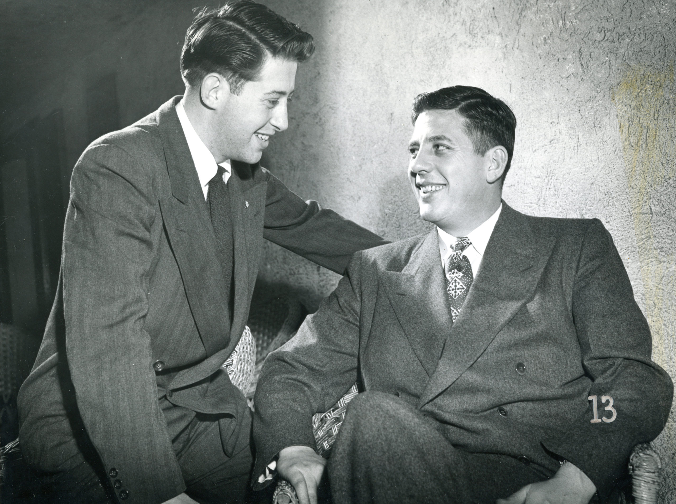 John C. Chapman (Upsilon Upsilon, Washington 1925) says, “We expect big things from your new chapter,” to his initiate son John T. “Tim” Chapman (Delta Phi, Puget Sound 1952). (Sigma Chi Fraternity Archives)